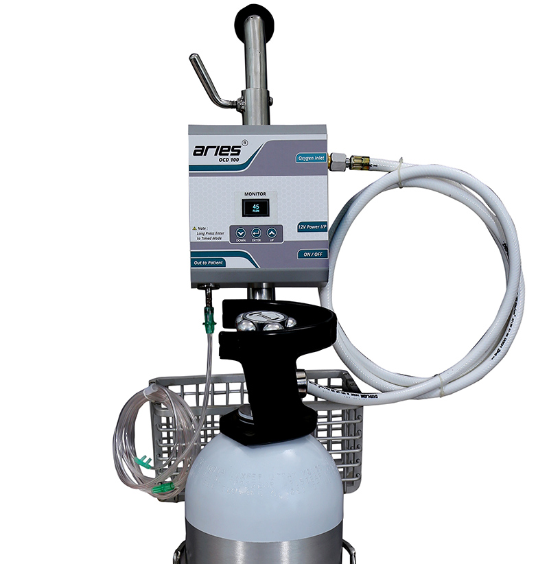 Aries O2 Conservation device controls the flow of oxygen from the oxygen source to the patient. This device releases oxygen only during the patient inspiration and closes the oxygen during the patient expiration. This device saves 1:3 ratio of oxygen used. This device offers increased mobility and comfort to patients by avoiding continuous flow of oxygen into the nostrils.